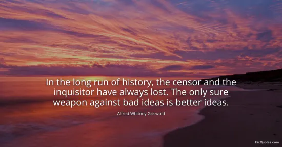 Griswold, Alfred Whitney. (2026, January 17). In the long run of history, the censor and the inquisitor have always lost. The only sure weapon against bad ideas is better ideas. FixQuotes. https://fixquotes.com/quotes/in-the-long-run-of-history-the-censor-and-the-41040/