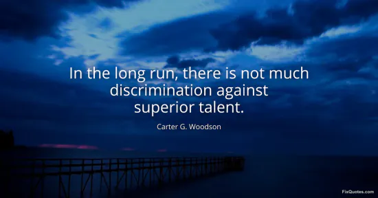Context matters: Woodson spent his career documenting how American education erased Black achievement and trained Black students to internalize that erasure. In that light, this sentence reads like strategy. It’s a counternarrative designed to restore ambition and patience without surrendering to naive faith in “fairness.” He offers a long arc, not a guarantee: talent can outlast gatekeepers, but the wait is part of the cruelty. The quote works because it speaks in the calm voice of inevitability while smuggling in a demand for urgency.