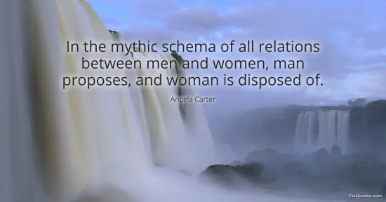 Carter, Angela. "In the mythic schema of all relations between men and women, man proposes, and woman is disposed of." FixQuotes. January 18, 2026. https://fixquotes.com/quotes/in-the-mythic-schema-of-all-relations-between-men-3230/.