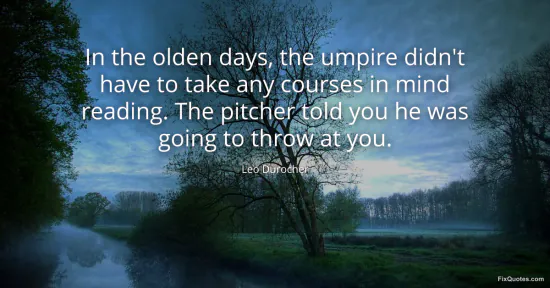 Durocher, Leo. "In the olden days, the umpire didn't have to take any courses in mind reading. The pitcher told you he was going to throw at you." FixQuotes. January 17, 2026. https://fixquotes.com/quotes/in-the-olden-days-the-umpire-didnt-have-to-take-26846/.