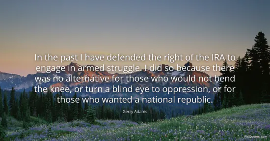Adams, Gerry. (2026, January 17). In the past I have defended the right of the IRA to engage in armed struggle. I did so because there was no alternative for those who would not bend the knee, or turn a blind eye to oppression, or for those who wanted a national republic. FixQuotes. https://fixquotes.com/quotes/in-the-past-i-have-defended-the-right-of-the-ira-52964/
