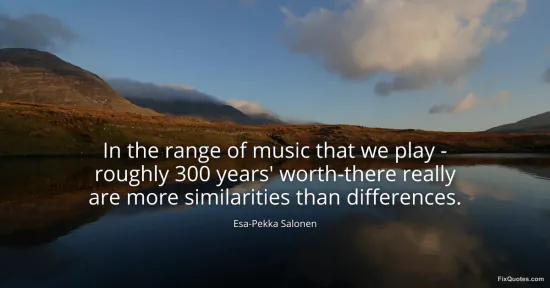 Salonen, Esa-Pekka. (2026, January 17). In the range of music that we play - roughly 300 years' worth-there really are more similarities than differences. FixQuotes. https://fixquotes.com/quotes/in-the-range-of-music-that-we-play-roughly-300-47380/