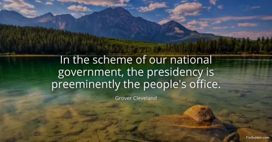 Cleveland, Grover. "In the scheme of our national government, the presidency is preeminently the people's office." FixQuotes. January 16, 2026. https://fixquotes.com/quotes/in-the-scheme-of-our-national-government-the-105317/.