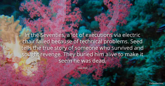 Boll, Uwe. (2026, January 15). In the Seventies, a lot of executions via electric chair failed because of technical problems. Seed tells the true story of someone who survived and sought revenge. They buried him alive to make it seem he was dead. FixQuotes. https://fixquotes.com/quotes/in-the-seventies-a-lot-of-executions-via-electric-154243/