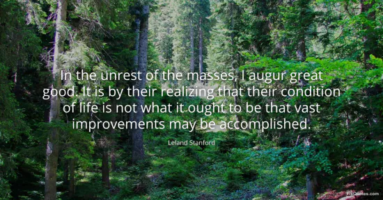 Stanford, Leland. "In the unrest of the masses, I augur great good. It is by their realizing that their condition of life is not what it ought to be that vast improvements may be accomplished." FixQuotes. February 16, 2026. https://fixquotes.com/quotes/in-the-unrest-of-the-masses-i-augur-great-good-it-114724/.