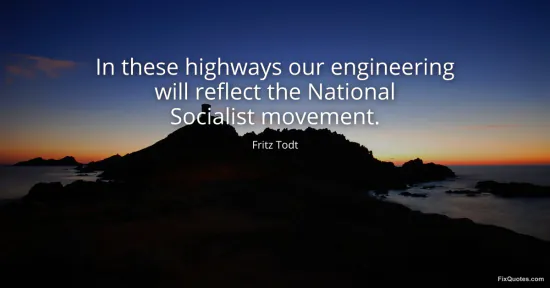 Todt, Fritz. "In these highways our engineering will reflect the National Socialist movement." FixQuotes. January 16, 2026. https://fixquotes.com/quotes/in-these-highways-our-engineering-will-reflect-82410/.