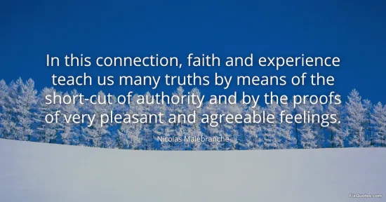 Malebranche, Nicolas. (2026, January 18). In this connection, faith and experience teach us many truths by means of the short-cut of authority and by the proofs of very pleasant and agreeable feelings. FixQuotes. https://fixquotes.com/quotes/in-this-connection-faith-and-experience-teach-us-2767/