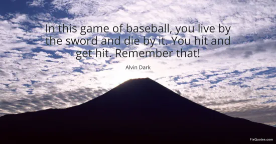 Dark, Alvin. (2026, February 19). In this game of baseball, you live by the sword and die by it. You hit and get hit. Remember that! FixQuotes. https://fixquotes.com/quotes/in-this-game-of-baseball-you-live-by-the-sword-35358/