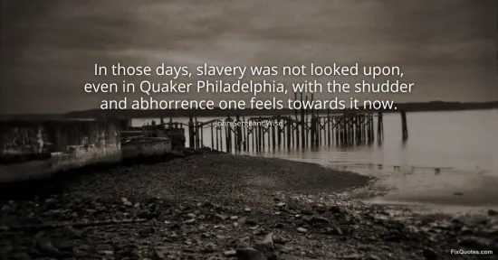 "In those days, slavery was not looked upon, even in Quaker Philadelphia, with the shudder and abhorrence one feels towards it now." FixQuotes, 16 Jan. 2026, https://fixquotes.com/quotes/in-those-days-slavery-was-not-looked-upon-even-in-133563/. Accessed 21 Feb. 2026.