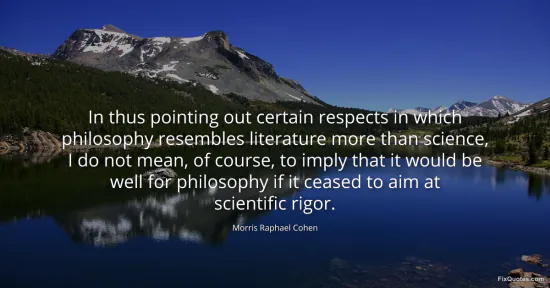 Cohen, Morris Raphael. "In thus pointing out certain respects in which philosophy resembles literature more than science, I do not mean, of course, to imply that it would be well for philosophy if it ceased to aim at scientific rigor." FixQuotes. January 16, 2026. https://fixquotes.com/quotes/in-thus-pointing-out-certain-respects-in-which-88751/.