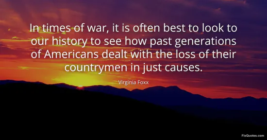 Foxx, Virginia. "In times of war, it is often best to look to our history to see how past generations of Americans dealt with the loss of their countrymen in just causes." FixQuotes. January 15, 2026. https://fixquotes.com/quotes/in-times-of-war-it-is-often-best-to-look-to-our-156956/.