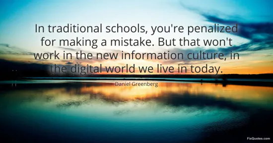 Greenberg, Daniel. (2026, January 17). In traditional schools, you're penalized for making a mistake. But that won't work in the new information culture, in the digital world we live in today. FixQuotes. https://fixquotes.com/quotes/in-traditional-schools-youre-penalized-for-making-43264/