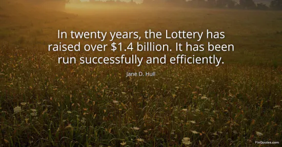 Hull, Jane D. "In twenty years, the Lottery has raised over $1.4 billion. It has been run successfully and efficiently." FixQuotes. January 15, 2026. https://fixquotes.com/quotes/in-twenty-years-the-lottery-has-raised-over-14-147057/.