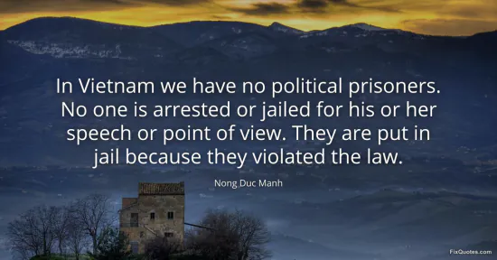 Manh, Nong Duc. (2026, January 16). In Vietnam we have no political prisoners. No one is arrested or jailed for his or her speech or point of view. They are put in jail because they violated the law. FixQuotes. https://fixquotes.com/quotes/in-vietnam-we-have-no-political-prisoners-no-one-82256/