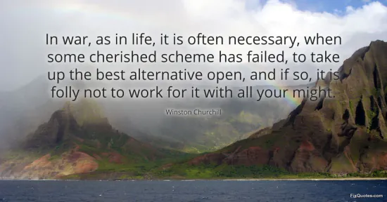 Churchill, Winston. "In war, as in life, it is often necessary, when some cherished scheme has failed, to take up the best alternative open, and if so, it is folly not to work for it with all your might." FixQuotes. February 19, 2026. https://fixquotes.com/quotes/in-war-as-in-life-it-is-often-necessary-when-some-27783/.