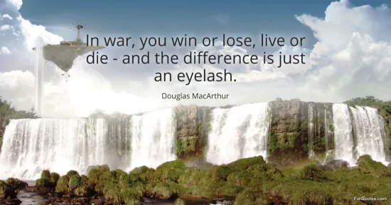 MacArthur, Douglas. "In war, you win or lose, live or die - and the difference is just an eyelash." FixQuotes. January 17, 2026. https://fixquotes.com/quotes/in-war-you-win-or-lose-live-or-die-and-the-30888/.
