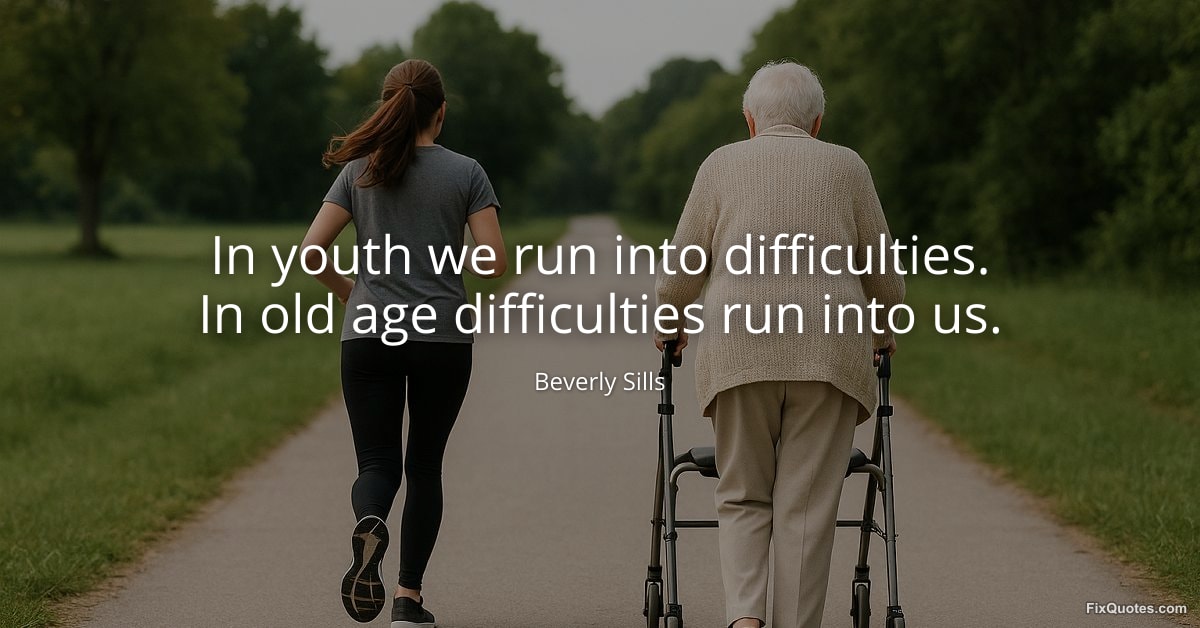 Sills, Beverly. "In youth we run into difficulties. In old age difficulties run into us." FixQuotes. January 11, 2026. https://fixquotes.com/quotes/in-youth-we-run-into-difficulties-in-old-age-133931/.