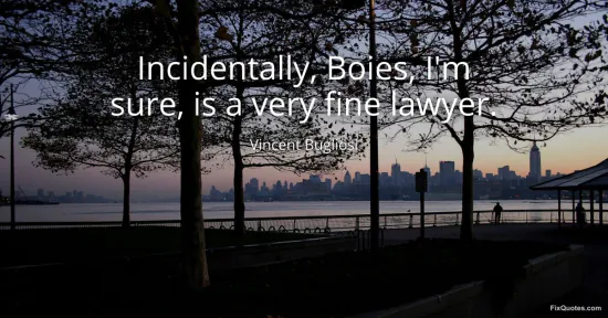 Bugliosi, Vincent. (2026, January 16). Incidentally, Boies, I'm sure, is a very fine lawyer. FixQuotes. https://fixquotes.com/quotes/incidentally-boies-im-sure-is-a-very-fine-lawyer-106063/