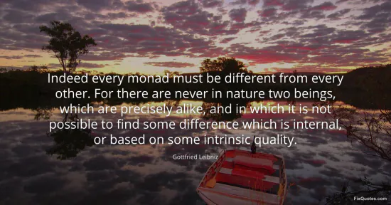 Leibniz, Gottfried. (2026, January 18). Indeed every monad must be different from every other. For there are never in nature two beings, which are precisely alike, and in which it is not possible to find some difference which is internal, or based on some intrinsic quality. FixQuotes. https://fixquotes.com/quotes/indeed-every-monad-must-be-different-from-every-420/