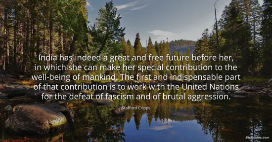 Cripps, Stafford. "India has indeed a great and free future before her, in which she can make her special contribution to the well-being of mankind. The first and indispensable part of that contribution is to work with the United Nations for the defeat of fascism and of brutal aggression." FixQuotes. January 15, 2026. https://fixquotes.com/quotes/india-has-indeed-a-great-and-free-future-before-165019/.