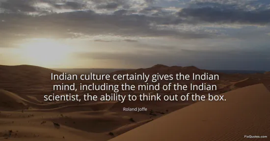 Joffe, Roland. "Indian culture certainly gives the Indian mind, including the mind of the Indian scientist, the ability to think out of the box." FixQuotes. January 18, 2026. https://fixquotes.com/quotes/indian-culture-certainly-gives-the-indian-mind-3562/.