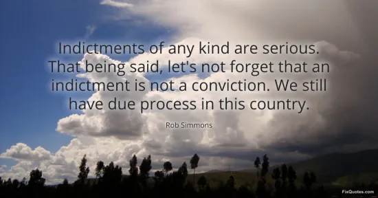 Simmons, Rob. (2026, January 16). Indictments of any kind are serious. That being said, let's not forget that an indictment is not a conviction. We still have due process in this country. FixQuotes. https://fixquotes.com/quotes/indictments-of-any-kind-are-serious-that-being-115989/