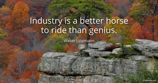 Lippmann, Walter. (2026, January 16). Industry is a better horse to ride than genius. FixQuotes. https://fixquotes.com/quotes/industry-is-a-better-horse-to-ride-than-genius-84957/