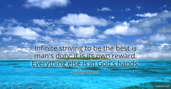Gandhi, Mahatma. (2026, January 17). Infinite striving to be the best is man's duty; it is its own reward. Everything else is in God's hands. FixQuotes. https://fixquotes.com/quotes/infinite-striving-to-be-the-best-is-mans-duty-it-26073/