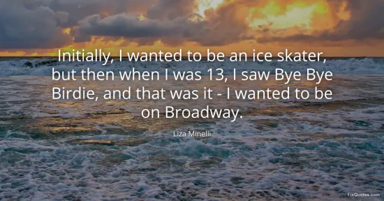 Minelli, Liza. (2026, February 18). Initially, I wanted to be an ice skater, but then when I was 13, I saw Bye Bye Birdie, and that was it - I wanted to be on Broadway. FixQuotes. https://fixquotes.com/quotes/initially-i-wanted-to-be-an-ice-skater-but-then-76798/