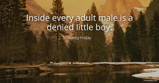 Friday, Nancy. "Inside every adult male is a denied little boy." FixQuotes. January 16, 2026. https://fixquotes.com/quotes/inside-every-adult-male-is-a-denied-little-boy-93776/.