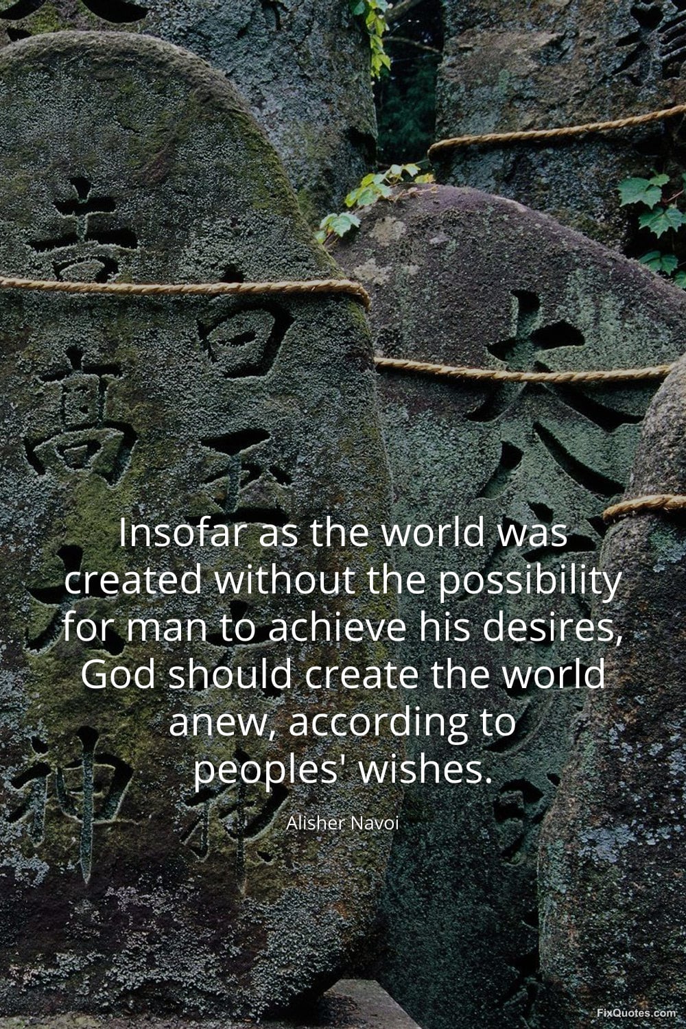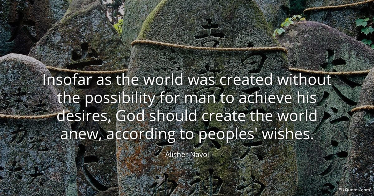 Navoi, Alisher. (2026, March 8). Insofar as the world was created without the possibility for man to achieve his desires, God should create the world anew, according to peoples' wishes. FixQuotes. https://fixquotes.com/quotes/insofar-as-the-world-was-created-without-the-185747/