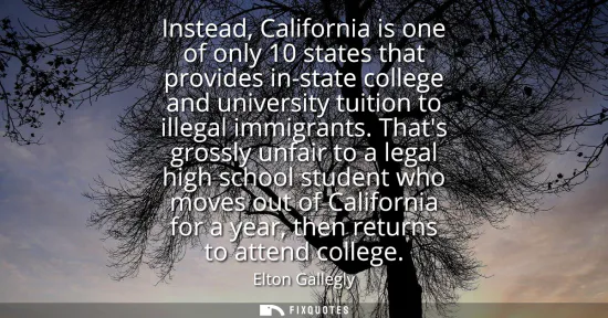 "Instead, California is one of only 10 states that provides in-state college and university tuition to illegal immigrants. That's grossly unfair to a legal high school student who moves out of California for a year, then returns to attend college"