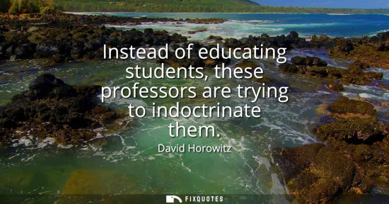 The line draws a bright boundary between two ideals: education as the cultivation of independent judgment, and indoctrination as the implantation of ready-made beliefs. It suggests that some professors use their authority to steer students toward approved conclusions rather than equip them to interrogate assumptions, weigh evidence, and argue from reason. Coming from David Horowitz, a former New Left activist who became a conservative critic of higher education, the charge reflects long-running culture-war anxieties about the politics of the academy.