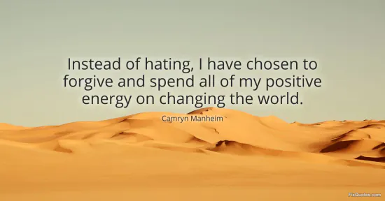Manheim, Camryn. (2026, January 17). Instead of hating, I have chosen to forgive and spend all of my positive energy on changing the world. FixQuotes. https://fixquotes.com/quotes/instead-of-hating-i-have-chosen-to-forgive-and-42948/