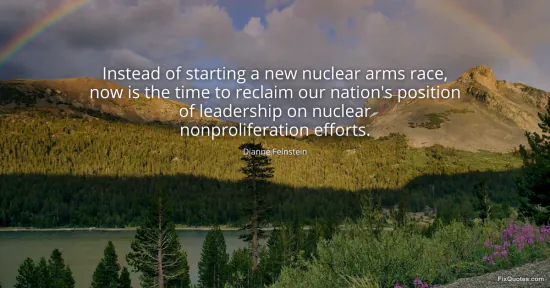 Feinstein, Dianne. (2026, February 16). Instead of starting a new nuclear arms race, now is the time to reclaim our nation's position of leadership on nuclear nonproliferation efforts. FixQuotes. https://fixquotes.com/quotes/instead-of-starting-a-new-nuclear-arms-race-now-145196/