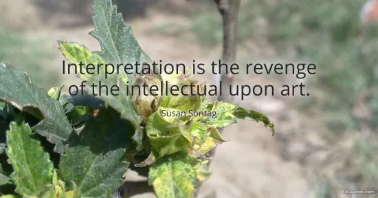 Sontag, Susan. (2026, February 9). Interpretation is the revenge of the intellectual upon art. FixQuotes. https://fixquotes.com/quotes/interpretation-is-the-revenge-of-the-intellectual-156060/