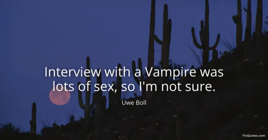 Boll, Uwe. "Interview with a Vampire was lots of sex, so I'm not sure." FixQuotes. January 15, 2026. https://fixquotes.com/quotes/interview-with-a-vampire-was-lots-of-sex-so-im-148137/.