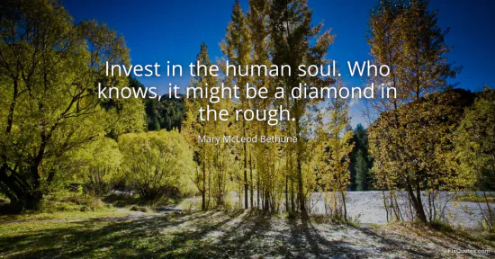 Bethune, Mary McLeod. "Invest in the human soul. Who knows, it might be a diamond in the rough." FixQuotes. January 15, 2026. https://fixquotes.com/quotes/invest-in-the-human-soul-who-knows-it-might-be-a-5255/.