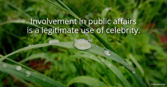 Silver, Ron. "Involvement in public affairs is a legitimate use of celebrity." FixQuotes. January 15, 2026. https://fixquotes.com/quotes/involvement-in-public-affairs-is-a-legitimate-use-168424/.