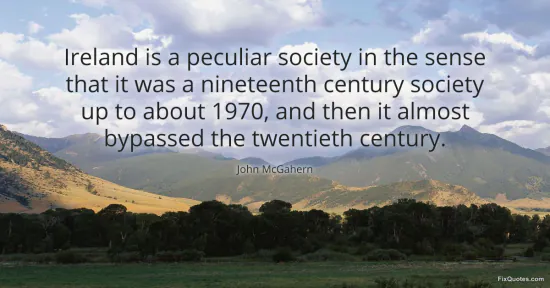 McGahern, John. "Ireland is a peculiar society in the sense that it was a nineteenth century society up to about 1970, and then it almost bypassed the twentieth century." FixQuotes. February 16, 2026. https://fixquotes.com/quotes/ireland-is-a-peculiar-society-in-the-sense-that-114175/.