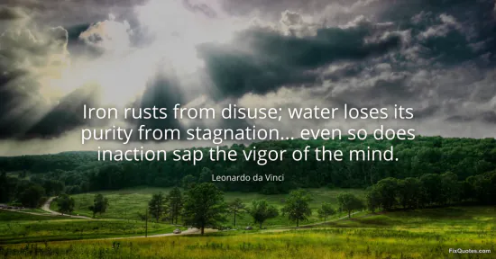 Vinci, Leonardo da. "Iron rusts from disuse; water loses its purity from stagnation... even so does inaction sap the vigor of the mind." FixQuotes. January 14, 2026. https://fixquotes.com/quotes/iron-rusts-from-disuse-water-loses-its-purity-8304/.
