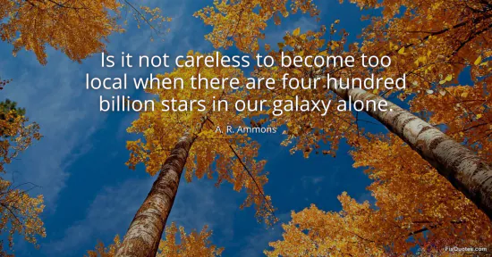 Ammons, A. R. (2026, January 17). Is it not careless to become too local when there are four hundred billion stars in our galaxy alone. FixQuotes. https://fixquotes.com/quotes/is-it-not-careless-to-become-too-local-when-there-34730/