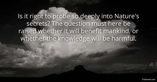 Curie, Pierre. "Is it right to probe so deeply into Nature's secrets? The question must here be raised whether it will benefit mankind, or whether the knowledge will be harmful." FixQuotes. January 15, 2026. https://fixquotes.com/quotes/is-it-right-to-probe-so-deeply-into-natures-3483/.