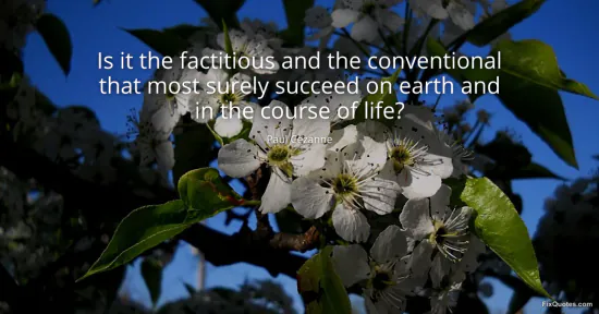 Cezanne, Paul. (2026, January 15). Is it the factitious and the conventional that most surely succeed on earth and in the course of life? FixQuotes. https://fixquotes.com/quotes/is-it-the-factitious-and-the-conventional-that-147829/