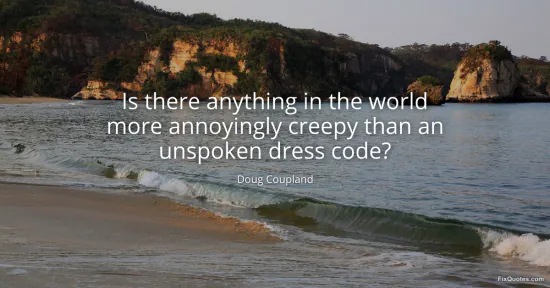 Coupland, Doug. (2026, January 15). Is there anything in the world more annoyingly creepy than an unspoken dress code? FixQuotes. https://fixquotes.com/quotes/is-there-anything-in-the-world-more-annoyingly-141110/