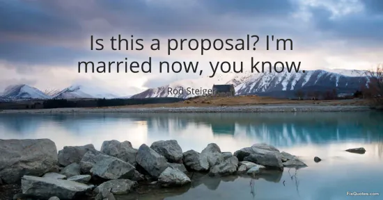 Steiger, Rod. (2026, January 17). Is this a proposal? I'm married now, you know. FixQuotes. https://fixquotes.com/quotes/is-this-a-proposal-im-married-now-you-know-62921/