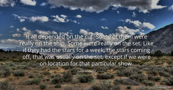 MacLeod, Gavin. (2026, January 17). It all depended on the cut. Some of them were really on the ship. Some were really on the set. Like if they had the stars for a week, the stars coming off, that was usually on the set, except if we were on location for that particular show. FixQuotes. https://fixquotes.com/quotes/it-all-depended-on-the-cut-some-of-them-were-59213/