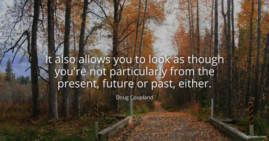 Coupland, Doug. (2026, January 17). It also allows you to look as though you're not particularly from the present, future or past, either. FixQuotes. https://fixquotes.com/quotes/it-also-allows-you-to-look-as-though-youre-not-57111/