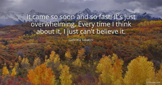 Sabatini, Gabriela. (2026, January 15). It came so soon and so fast. It's just overwhelming. Every time I think about it, I just can't believe it. FixQuotes. https://fixquotes.com/quotes/it-came-so-soon-and-so-fast-its-just-overwhelming-164683/