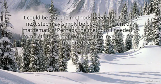 "It could be that the methods needed to take the next step may simply be beyond present day mathematics. Perhaps the methods I needed to complete the proof would not be invented for a hundred years." FixQuotes, 18 Jan. 2026, https://fixquotes.com/quotes/it-could-be-that-the-methods-needed-to-take-the-20077/. Accessed 12 Feb. 2026.